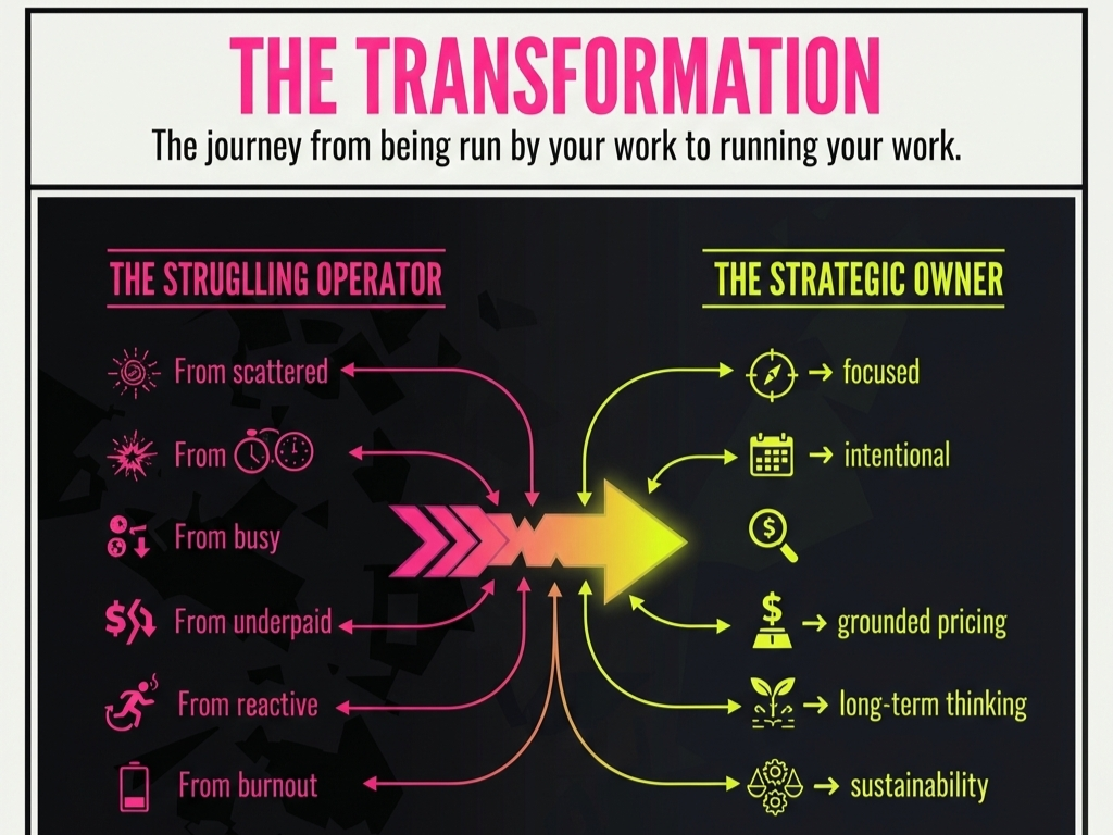 pricing, positioning, messaging, visibility, or building income that actually compounds.